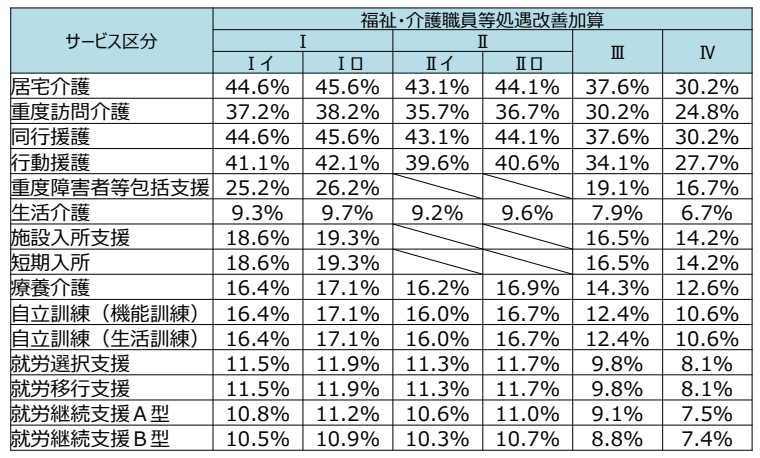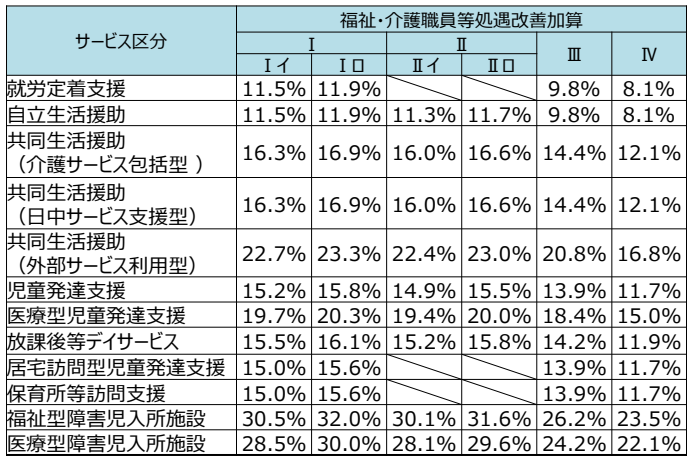 従来から処遇改善加算の対象となっていたサービスの加算率