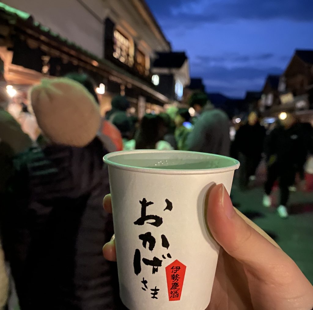 最初は「5時起きで…」と言っていたのが、だんだん「せっかく1日に来たのだからがっつり楽しんじゃおう!」という話になり、結局朝4時に起きて朝市へ。5時頃おかげ横丁に到着すると、すでに大行列!「やっぱり前日に決めたんじゃ遅いよね、、」と反省しつつ、行列に加わり…。真っ暗で寒い中、1時間近く並びましたが、お目当てのお粥にもありつけ、さらに赤福の朔日餅も無事買うことができ、元々の予定よりもだいぶ楽しむことができました。