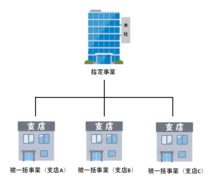 継続事業の一括制度において、まとめて処理を行う本社などの事業所を指定事業、指定事業に一括される支店や営業所を被一括事業といいます。つまり、本社と支店で事業主が同じである必要があるということです。