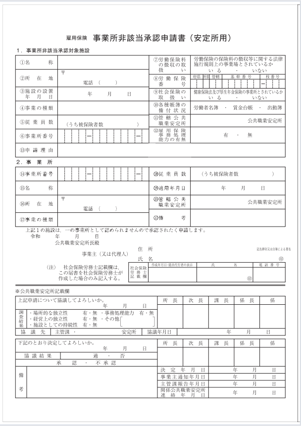 ・雇用保険事業所非該当承認申請書
