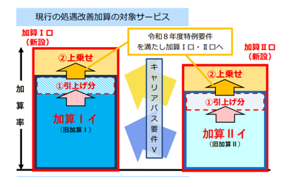 このうち、事業運営に最も大きな影響を与えるのが処遇改善加算の拡充です。