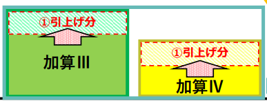 ◆加算ⅢとⅣに、ベースとなる加算率の引き上げ(①のみ=月額1万円相当)はあるものの、上位区分はありません。